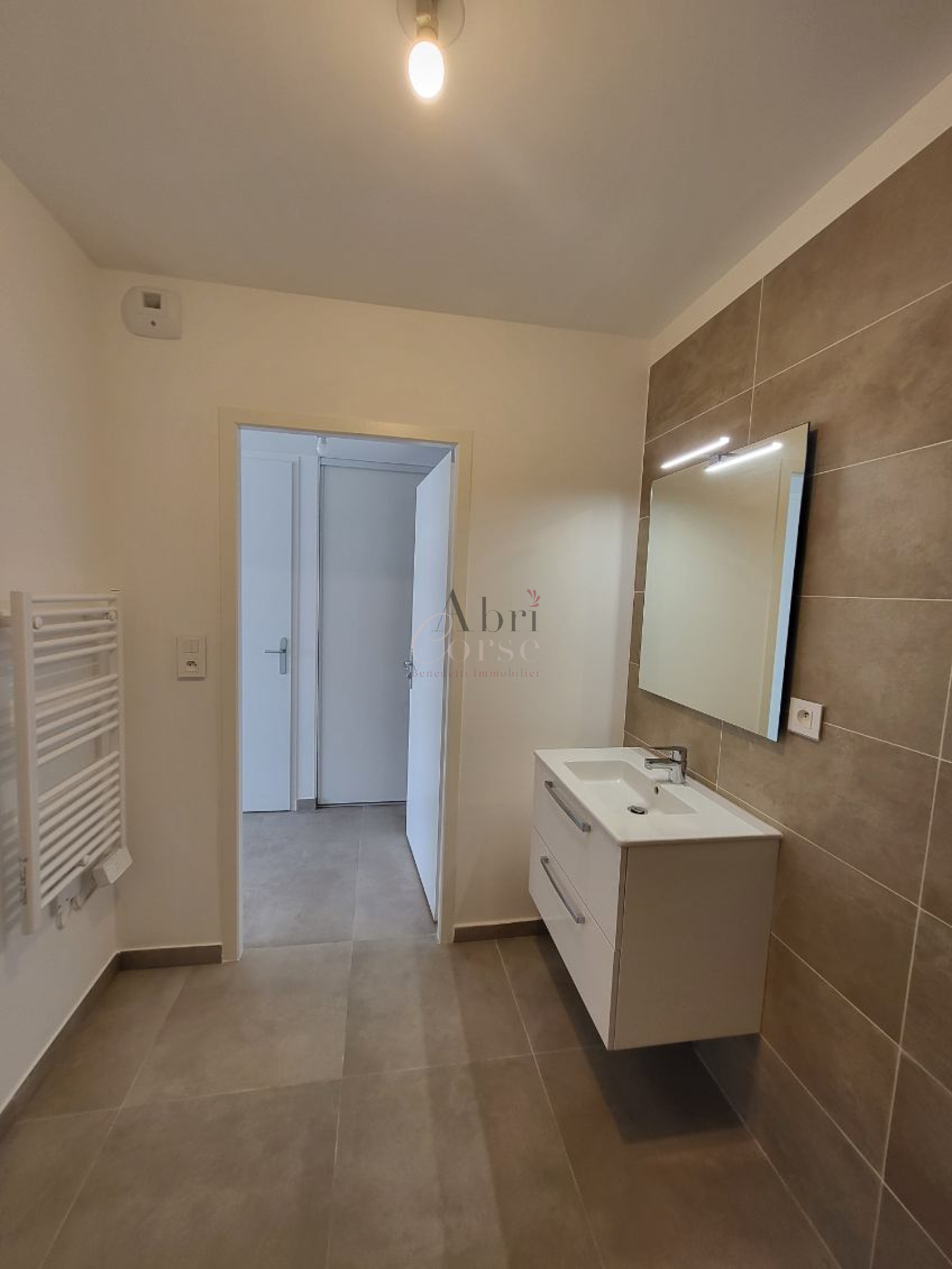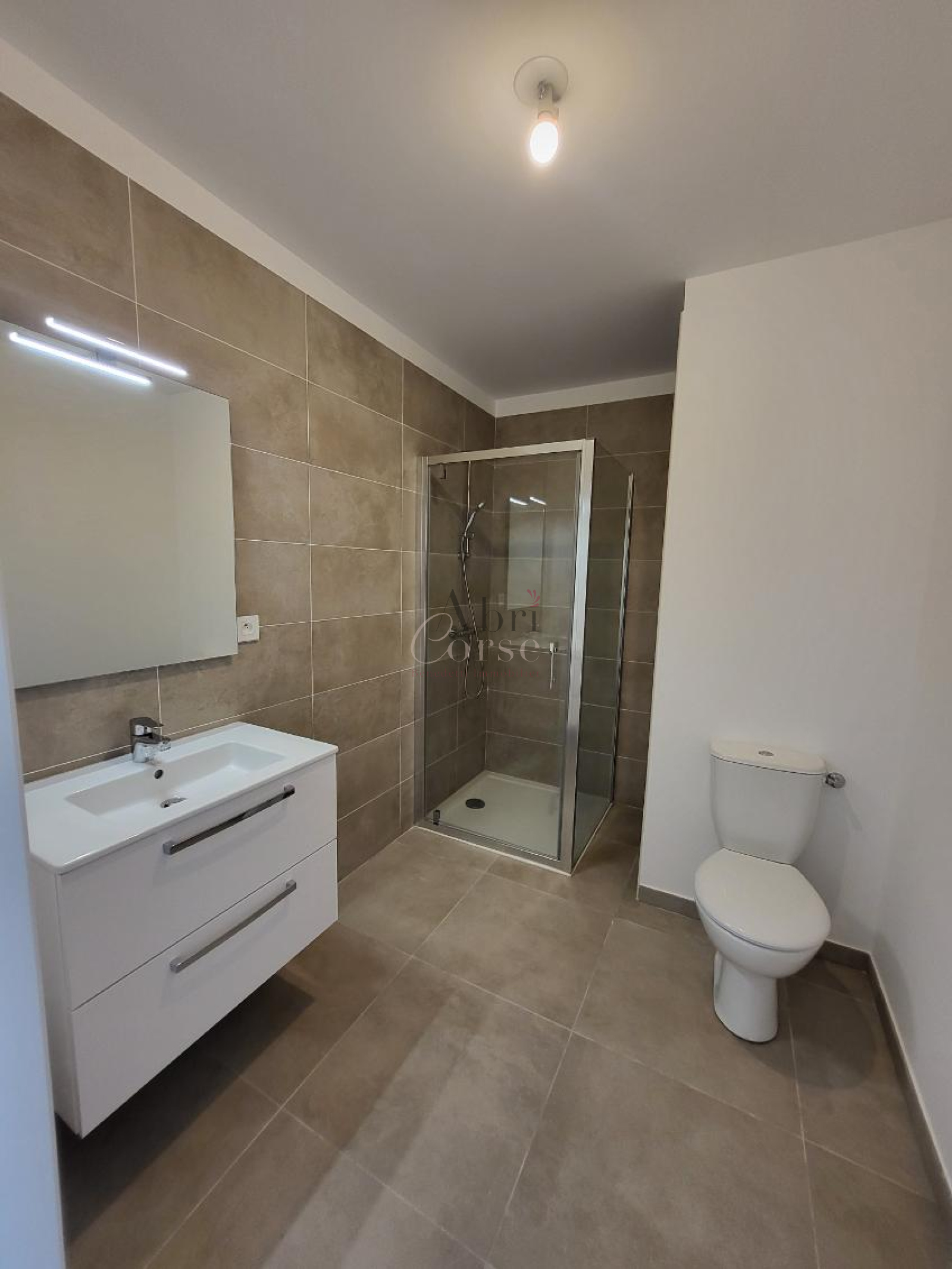 Ajaccio (20090)L'agence Abricorse vous propose a la location un appartement T2 de 45.60 m² neuf composé d'un sejour avec cuisine ouverte equipée, une chambre, une salle de douche et une terrrasse de 21.75 m²