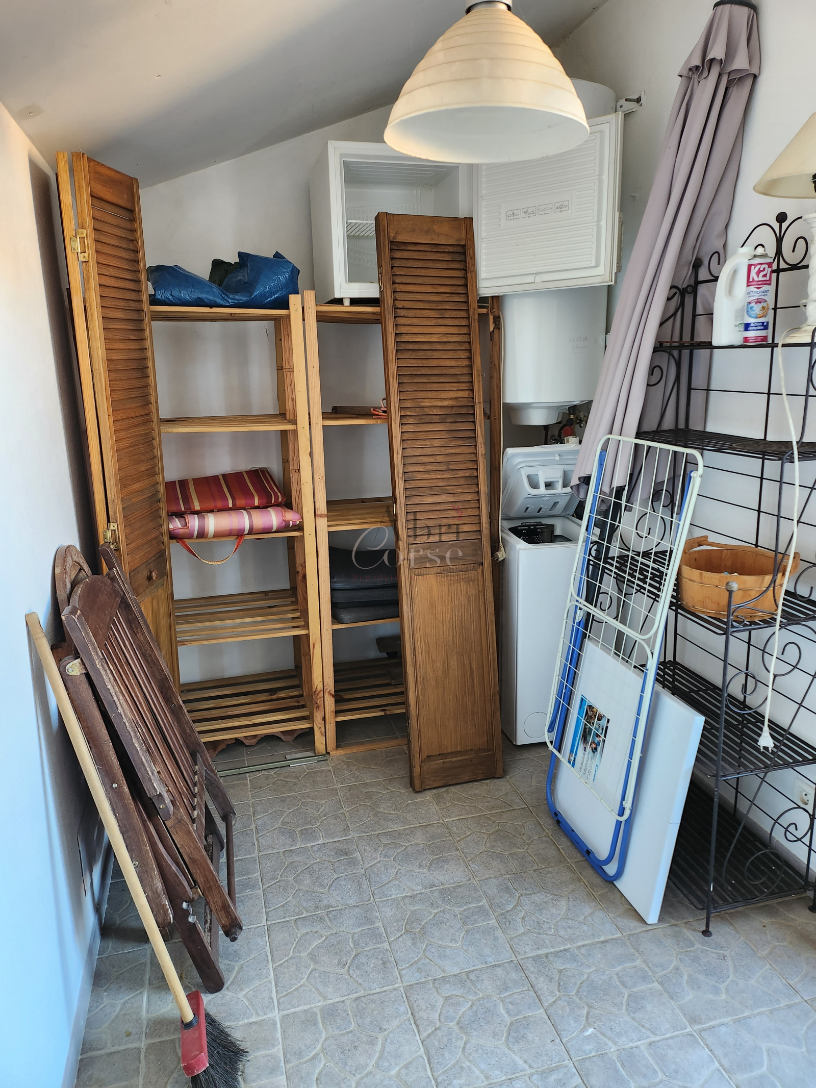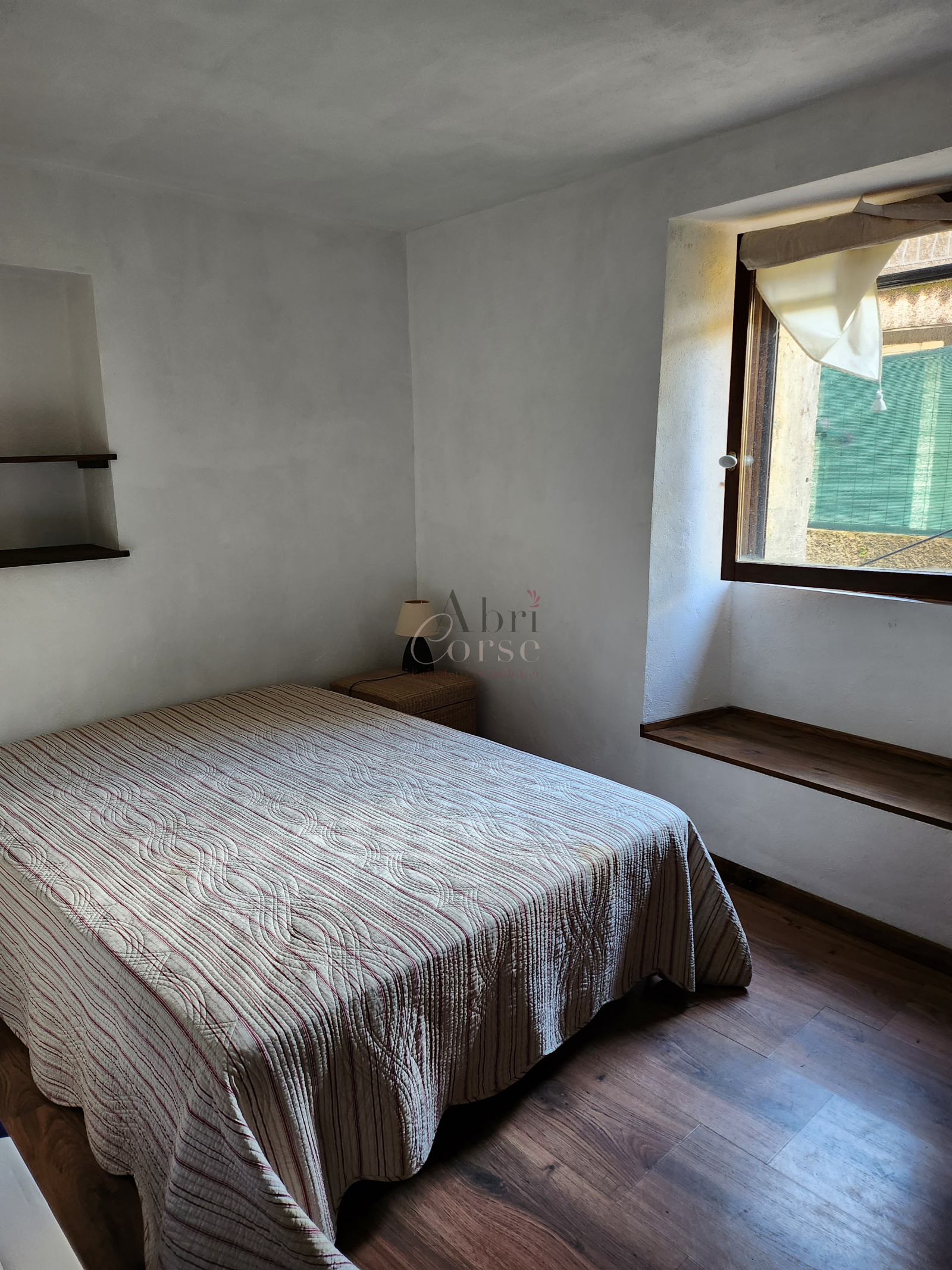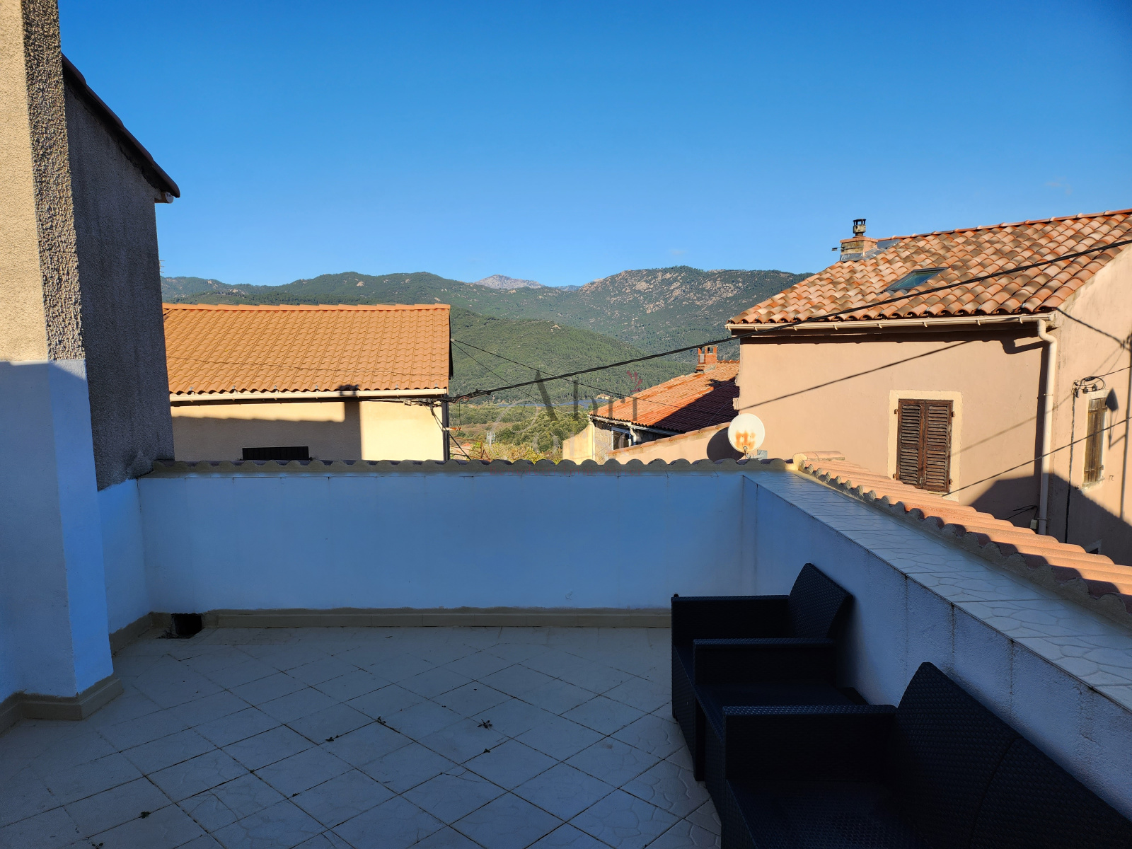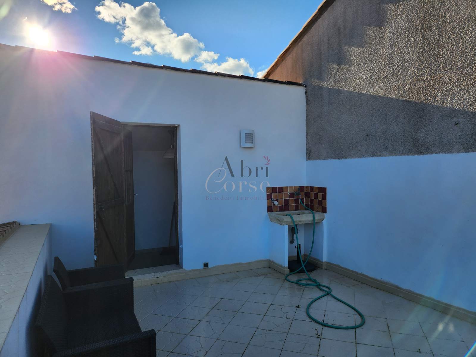 Ucciani (20133)A louer petite maison de 48.47 m² en duplex, elle composé au rez de chaussée d'une chambre, un espace bureau ouvert et une salle de douche, au premier étage un salon/ salle a manger avec une cuisine ouverte et une terrasse sur les toits avec un espace buanderie.