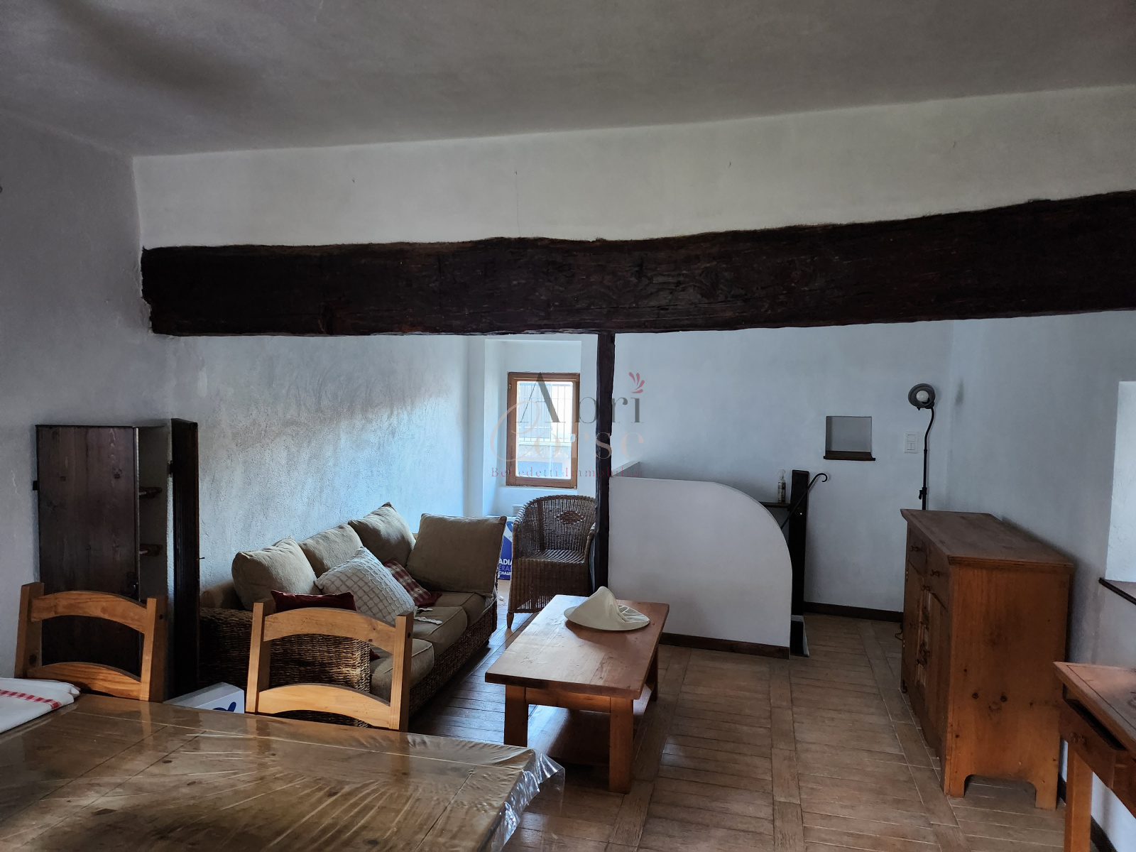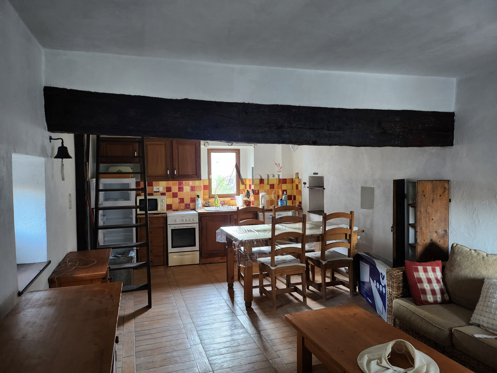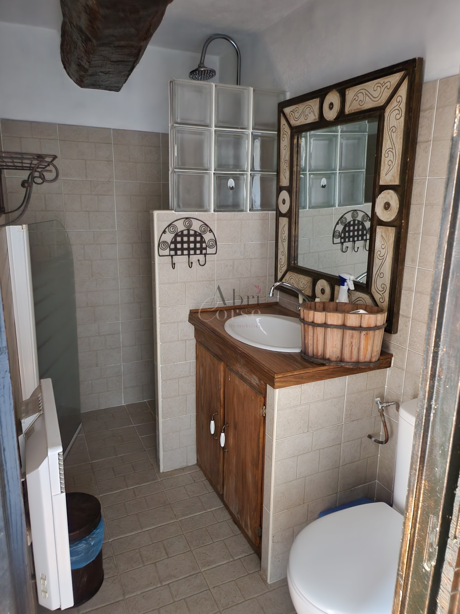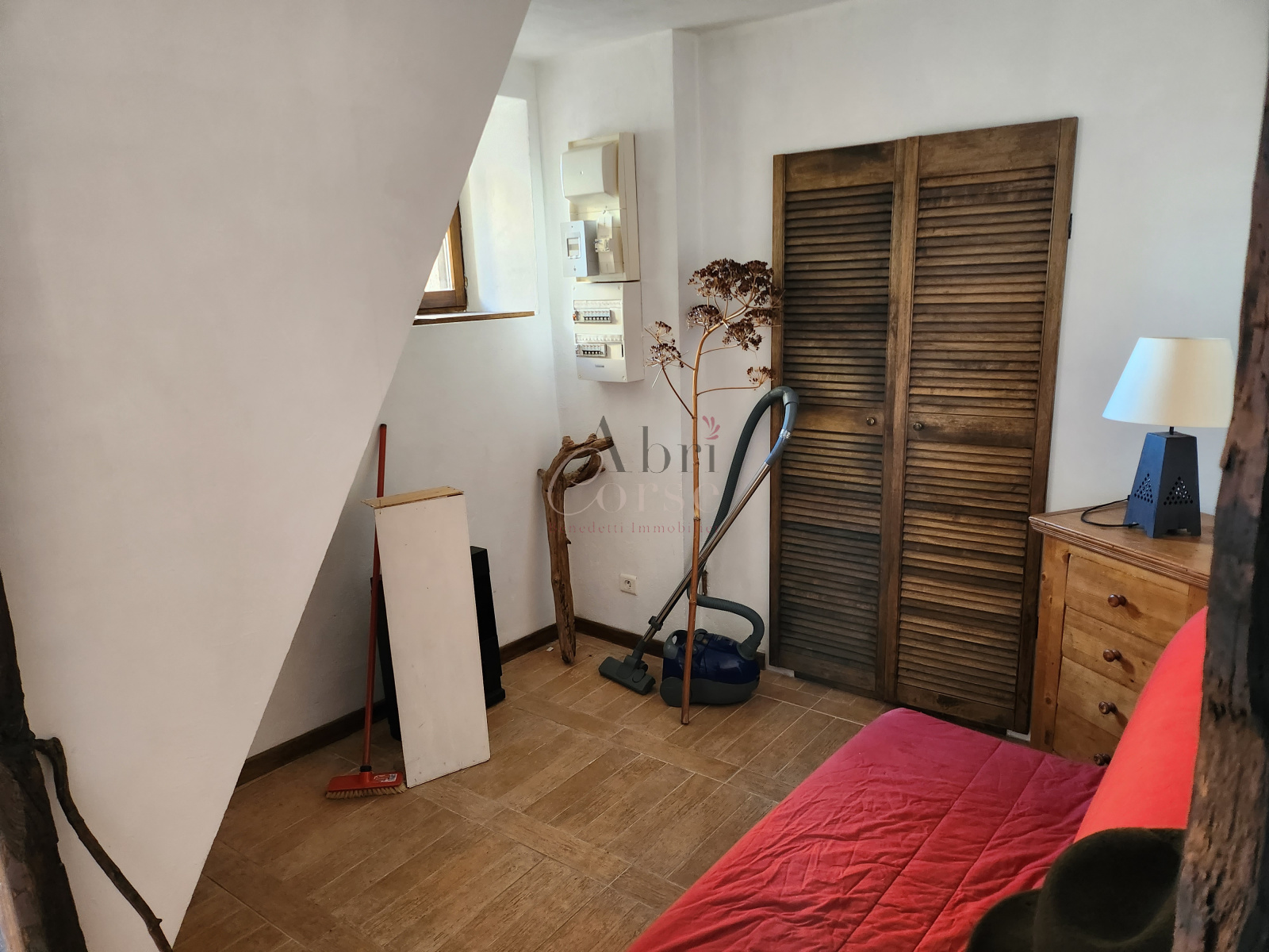 Ucciani (20133)A louer petite maison de 48.47 m² en duplex, elle composé au rez de chaussée d'une chambre, un espace bureau ouvert et une salle de douche, au premier étage un salon/ salle a manger avec une cuisine ouverte et une terrasse sur les toits avec un espace buanderie.