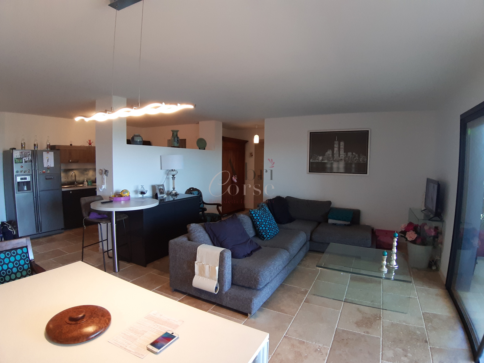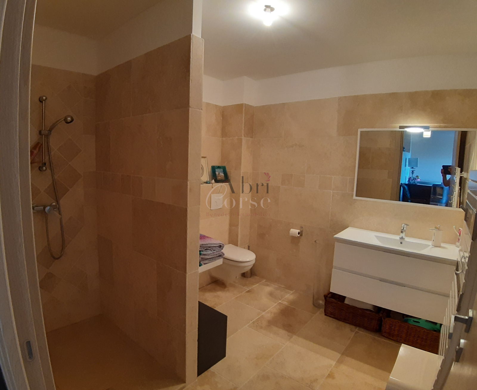 Alata (20167)EN EXCLUSIVITE: Sur la commune d’Alata, dans une petite résidence calme et sécurisée, nous sommes heureux de vous proposer un bel appartement type T2 d’une surface de 69m², livré en janvier 2018. Depuis sa grande terrasse sans vis-à-vis de 25m² exposée Sud-Est, vous profiterez d’une magnifique vue dégagée sur les montagnes et la mer. Situé au 1er étage avec ascenseur d’un petit collectif en R+2, ce bien entièrement climatisé, se compose d’une agréable pièce à vivre de 45m² avec cuisine semi-ouverte, entièrement aménagée et équipée, d’un cellier, d’une chambre avec grand placard aménagé, d’une salle d’eau moderne avec wc. Très nombreuses prestations haut de gamme : entièrement climatisé, volets roulants électriques, double-vitrage en Alu noir, carrelage en pierre travertin, placard sur-mesure avec coulissant Alu, cuisine Schmidt, porte 3 points, grands volumes, terrasse avec prise et point d’eau… Tout en profitant du calme de la campagne, vous serez à proximité des commerces, de l’école de Trova et à 5 minutes de Mezzavia, Baléone et ses centres commerciaux. Une place de parking complète ce bien. A visiter sans plus attendre ! Davantage d’informations ou une visite, n’hésitez pas me contacter : Julie BENEDETTI 0699061606 / benedetti@abricorse.com