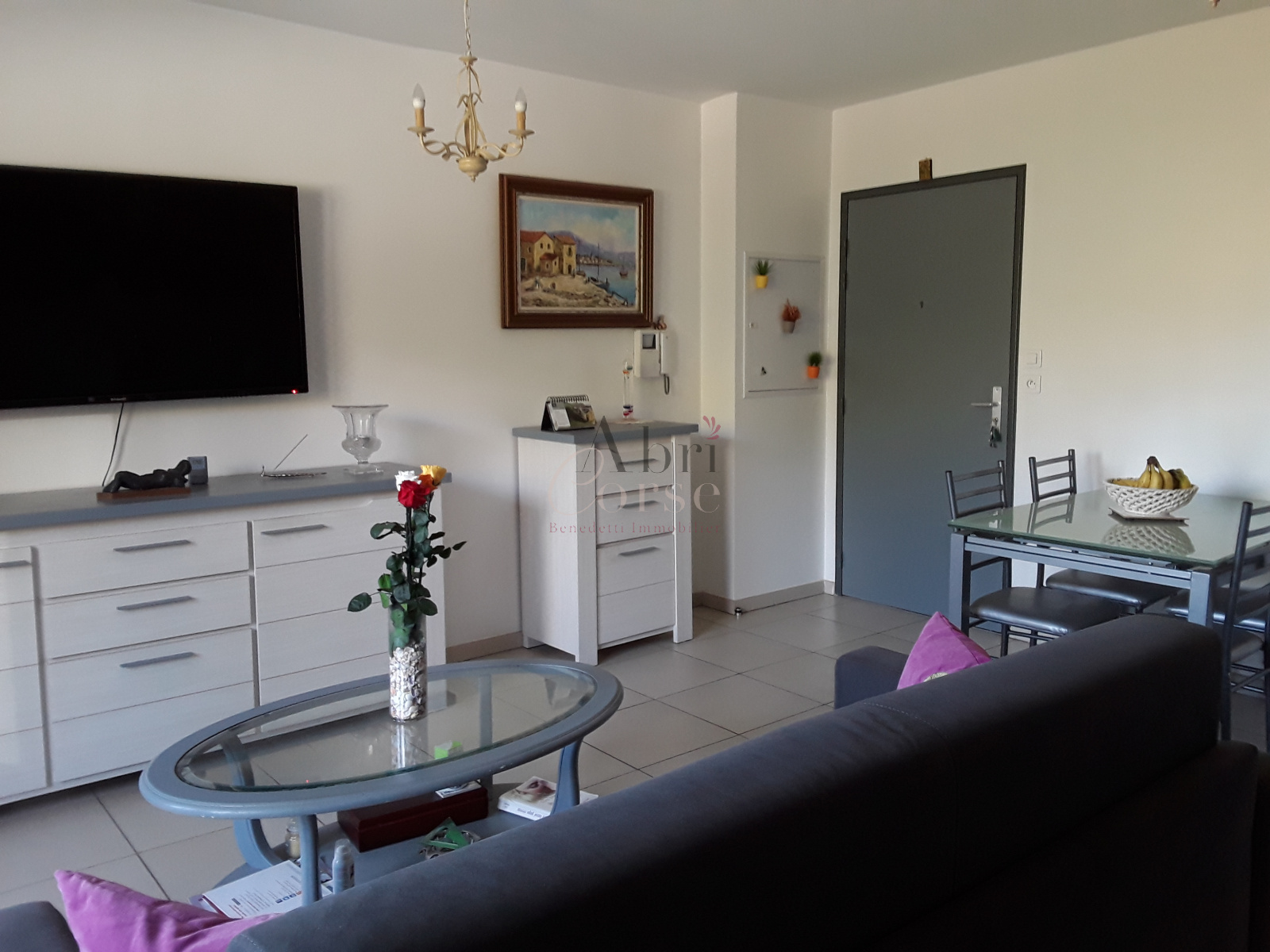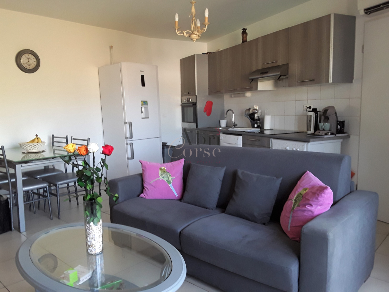 Sarrola-Carcopino (20167)L'agence ABRICORSE à le plaisir de vous proposer à la vente un charmant T2 de 40.85m² + balcon de 4m², au 1er étage dans résidence récente, fermée et sécurisée. Il se compose d'une pièce à vivre, cuisine équipée ouverte sur le séjour, une chambre, vaste salle de douche + WC. Climatisation réversible, aucuns travaux à prévoir. peut etre vendu en partie meublé. Place de parking en sous sol (possibilité de fermeture pour en faire un box)