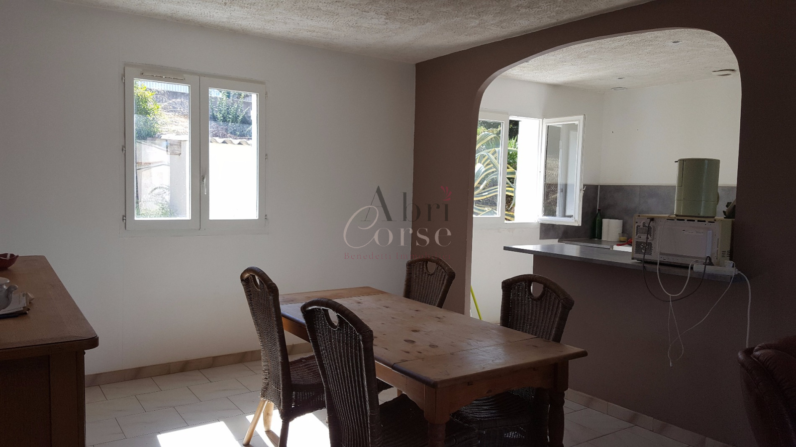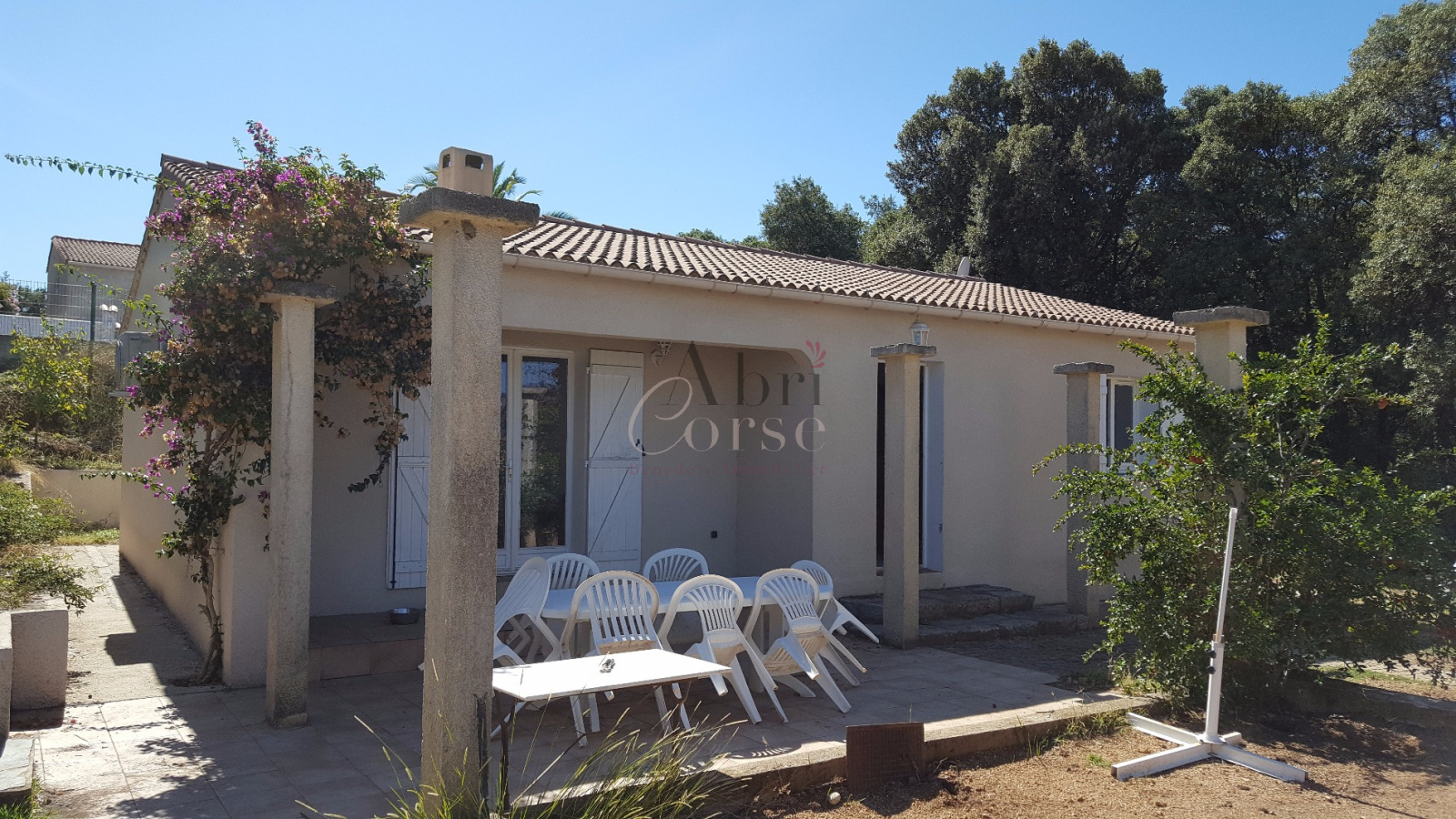 Porticcio (20166)L'agence ABRICORSE vous propose secteur entrée de PORTICCIO une jolie maison de plain pied de 80m² ainsi qu'une dépendance de 30m² aménagée en deux pièces.